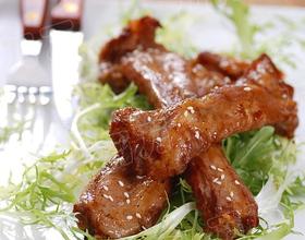 - 6. 烤箱预热200度,中层,烤15分钟后取出,把烤出的水份倒掉,排骨摆在烤网上,刷一层刚刚拌好的蜂蜜水,继续烤5分钟后取出,刷一层橄榄油,在烤5分钟即可。