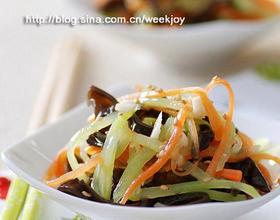 木耳泡发。莴苣去皮,胡萝卜洗净。