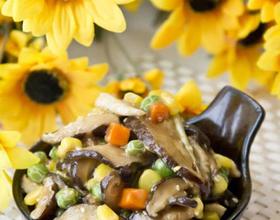 速冻*粒在各大超市冷鲜柜均有*,通常是玉米、胡萝卜和豌豆的混合浸泡过的香菇不要攥干水分,以免炒出的香菇口感太柴姜蒜醋可以用香醋代替,但是不能用白醋和陈醋浸泡干香菇时用温水,且蒂朝下,浸泡过的水在菜肴里淋入少许会使鲜香味更浓