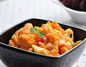 1、菜花掰小块,加入少许盐,浸泡十分钟,洗净。2、西红柿一定要切小丁,这样才能炒出来的西红柿细腻,上色好。3、西红柿炒的时候时间要长,尽量将其炒成细腻的西红柿泥。4、加入少许生抽,目的一是上色,二是提味。所以绝对不要用老抽或者颜色重的酱油代替。5、加入白糖,为了提鲜,不是为了甜味,所以少许即可。