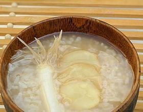 盖上盖子用小火煮成粘稠的粥,加葱白﹑生姜煮5分钟。