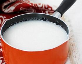 白将茯苓粉倒入锅中,用凉开水化开,加入杏仁粉,煮5分钟。