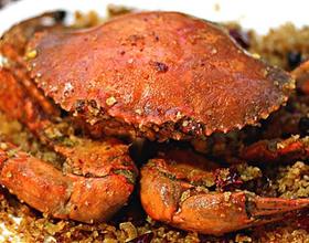 - 6. 接着放入炸香的螃蟹,倒入生抽,一勺白糖,黄酒,继续伴炒入味。