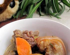 加入胡萝卜块煮至变软,加盐和鸡精即可出锅。