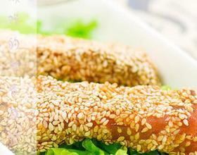 碗里倒入白芝麻,把腌制好的肉排放在白芝麻上滚一滚,使肉排均匀沾上白芝麻。