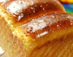将三个圆柱形面团排放在土司模里,手指弹点清水在面团表面,包上保鲜膜,同样的室温发酵1个半小时左右,看面团膨胀至土司模的九分满,在面团表面轻轻刷上全蛋液。烤箱提前5分钟180度预热后,将土司模放在烤箱中层,烤30分钟后取出立即脱模即可。