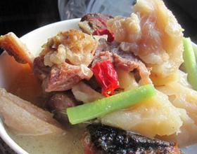 腊肉炖半小时以后加入土豆干同煮半小时。