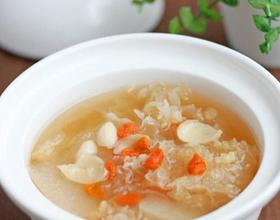 川贝碾碎,银耳、百合、枸杞用清水泡发后清洗滤干,冰糖置于小碗中备用。