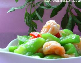 温锅放油,七成热下虾仁爆熟(虾仁一变白就关火,虾肉会保持柔嫩)。