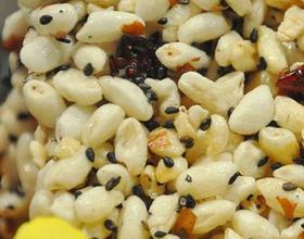 将米花倒锅中快速的翻炒,使其均匀地黏上糖液。