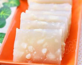 3.搅拌生浆的时候,一定要搅拌到溶液中完全无颗粒,否则马蹄糕内会有粉末状物质,影响美观和口感;