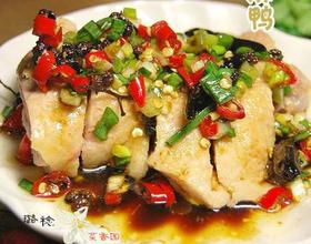 - 7. 小碗里调入海鲜酱油、香醋、盐、味精、白糖,连同炸过花椒和干辣椒段的熟油一并拌匀。鸭腿剁成小块放入盘中。