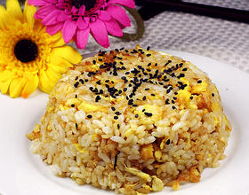 把米饭翻炒均匀。