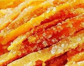 - 5. 取出橙皮,置于网架上沥干,于常温下干燥2~3日,快干的时候散些白糖在橙皮上面,干后切成细丝,即得糖渍橙皮。