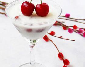 取出放凉后,放入腌过的樱桃,再放入冰箱,冷藏2-3小时即可。