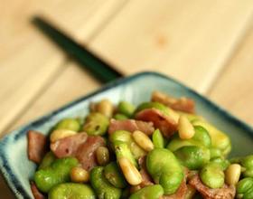 撒入盐要适量,因为培根本身有味道。水焯蚕豆的时间不宜过长,会丢失蚕豆本身的香味。蚕豆在炒之前已经焯熟,炒时可缩短翻炒时间。蚕豆不可生吃,最好也不要多吃,以防腹胀。少数人吃蚕豆后也会发生急性溶血性贫血,俗称的“蚕豆黄病”。