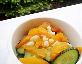 将白醋、糖、蒜蓉、话梅、盐调成醋汁,浇在黄瓜上,拌匀。