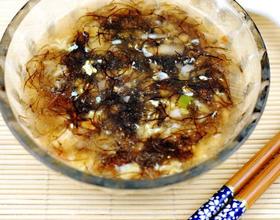 先把发菜放入凉水中浸泡15分钟,同时用筷子把发菜搅散。