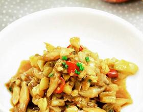 瓜皮经过腌制,已经相当入味了,炒制之前可适当试试味道,过咸的话,还需要泡水去除咸味。炒瓜皮的时候,加入少许白糖是提鲜用的。螺肉可选任何一种螺肉,请店家帮忙去螺壳即可。