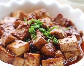 腐入锅翻炒,表面均匀沾上锅中的酱料,调入生抽,添加清水之后盖上锅盖大火煮沸,转小火焖煮5分钟,揭开锅盖倒入水淀粉勾薄芡收汁。