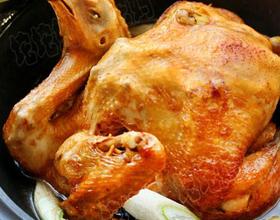 - 6. 锅内倒油,大火烧至七成热时,改小火,下入鸡,炸至通体金黄,家里有直身吊锅的,用那个炸比用炒锅炸要好,因为油更深,可以将鸡全部淹入油中浸炸,这样表皮上色更均匀,象我这样用炒锅炸的,只能不停用将油用锅铲浇在鸡身上,并且过几分钟还要将鸡翻个身,或左或右或上或下,这样才能每一面都炸到,但也免不了受热不均,贴着锅底的地方还是会比其它地方的颜色要深。