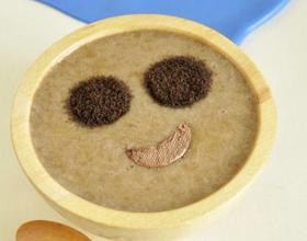 把卡片纸蒙在装香蕉酸奶昔的碗面上,撒下奥利奥饼片粉末,然后抽去卡片纸。