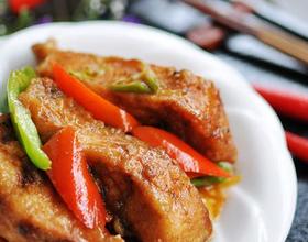 - 4. 再准备一些姜丝、葱片,把青红椒也切块。炒锅少放些油,油热后放入姜丝,葱片炒香,放入炸好的鱼块。