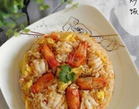 - 15. 放入米饭,用铲子将结块的米饭铲松,并翻炒至米粒松散。