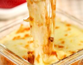 将炒好的米饭盛入烤碗中,表面均匀的撒上马苏里拉碎,烤箱预热,175度,中层,上火,10分钟左右即可。