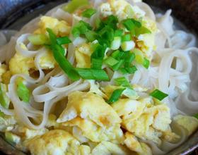 待面熟后把鸡蛋倒入锅内,放入盐,香油,即可出锅。