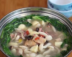 泡发的枸杞、蟹味菇和白玉菇洗净后放入汤中煮五分钟。