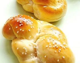 - 9. 发酵好后,在表面刷一层蛋液,洒上白芝麻。烤箱预热180度,中层上下火烤20分钟。