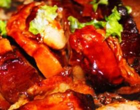 - 5. 趁热在肉上抹蜂蜜和老抽。然后用牙签在肉皮上扎出很多孔洞。