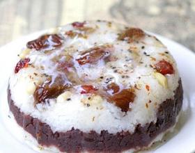 蒸好后,倒扣在盘子中,上面淋上桂花酱少许。