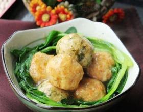 - 13. 用水汆好的荠菜肉圆捞出备用。