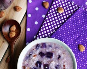 粥里还搭配了小把山杏仁,要提前浸泡过。连同浸泡山杏仁的水,再用搅拌机研磨碎。这样会充分提取山杏仁内在的香气,想粥不香都难啊。