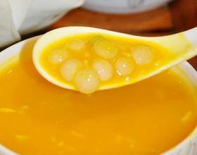 放入搅碎的南瓜泥和米酒烧开。最后淋入少许水淀粉烧开,根据口味加入适量糖即可。