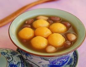 蒸熟红薯100g、糯米粉50g大致是2:1的比例,基本不需要再加水,如果觉得不能成团的话,用手沾些水揉成团即可接下来把面团搓成一个个小圆子就可以了事先煮好一锅花生红豆甜汤,红豆和花生提前浸泡一晚会非常好煮甜汤材料:花生米、红豆、红糖把红薯小圆子放入滚水中煮至浮起就可以捞出来放入凉开水中浸泡一下会让圆子的口感更Q~吃的时候直接盛入煮好的甜汤中