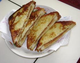 西多士香港茶餐厅小食之一,传说由从法国传入,香港惯称为「西多士」,简称「西多」,全名「法兰西多士」。这是由两片「方包」(吐司/多士)(烘面包)内层涂上花生酱,合上,外沾蛋汁,炸之,香脆。上桌时随意切成小块,再加上奶油(牛油),淋上糖浆或是炼奶(炼乳)即可入口。