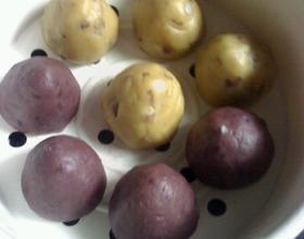 玉米粉,黄豆粉按3:1的量倒入盆中,再依个人口味加入白糖,奶粉