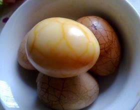 煮好的鸡蛋捞出轻轻敲碎蛋壳,也可以把蛋壳剥了。