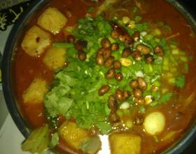 - 13. 开锅之后还要在煮一会,然后加入剩下的菜,放入醋味精就完成了,出锅撒上花生,香菜,葱就搞定了