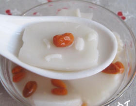 水开后放入适量的酒酿、枸杞、元肉,再放入年糕。