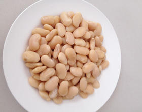 再加入泡好的白芸豆,煮40分钟,调入食盐,即可。