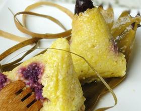 - 5. 把粽叶折成漏洞的形状,在粽子叶的底部放入一颗红枣。
