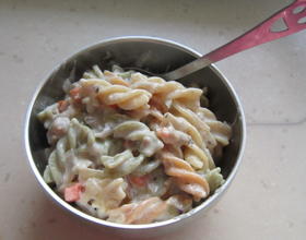 洋葱、胡萝卜、自制肉饼分别切丁备用。