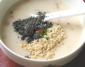 花生、黑芝麻分别炒熟用料理机搅碎备用。
