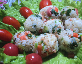 虾仁,胡萝卜,黄瓜,小火腿肠切丁
