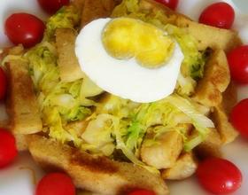 锅里放少许油,放入葱、姜煸炒。放入包菜翻炒。