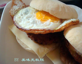 将芝士片、肉饼、鸡蛋夹在饼中即可美美的享用喽!